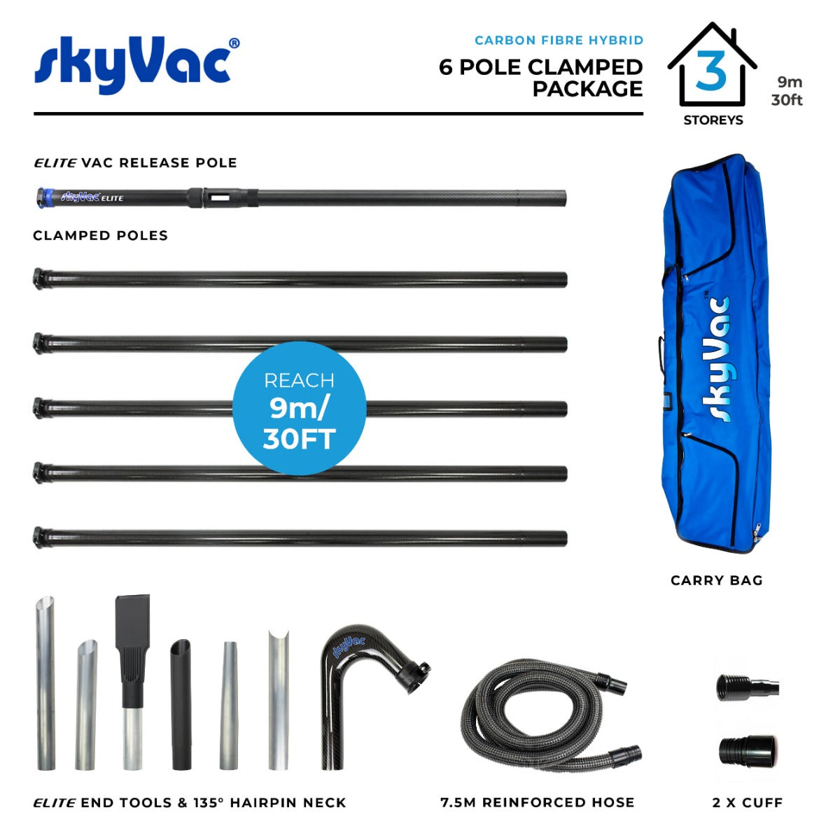 SkyVac®️ Hybrid Clamped Pole Set with Hose, Neck & End Tools (You Choose)